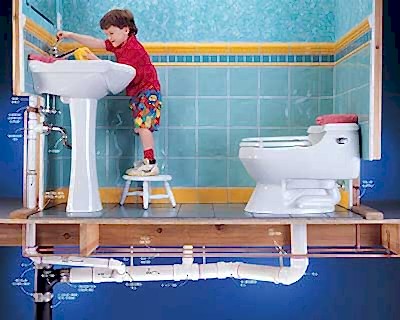 Döşeme içinden ya da duvara pis su gider boruları döşenmelidir. Duvar yüzeyinden ise pimaş su kolon boruları döşenmelidir. Daha sonra bu borular fayans altına alınır. Döşeme üstünden ya da düşük döşeme ile yataydaki atık su boruları döşenir. Daha sonra döşeme kaplaması ile kaplanır.